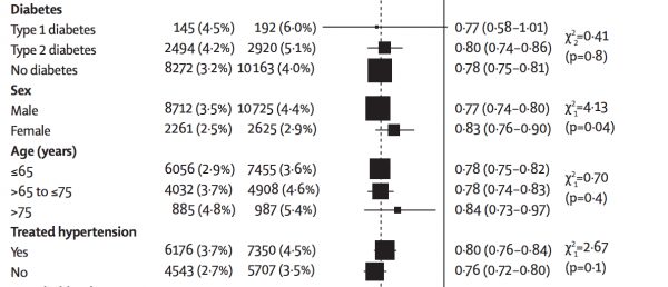 It is important to acknowledge that the above study addressed trials on primary and secondary prevention combined. In fact, the effect of statins becomes less impressive when looking solely at studies in primary prevention, e.g. patients without established cardiovascular disease.