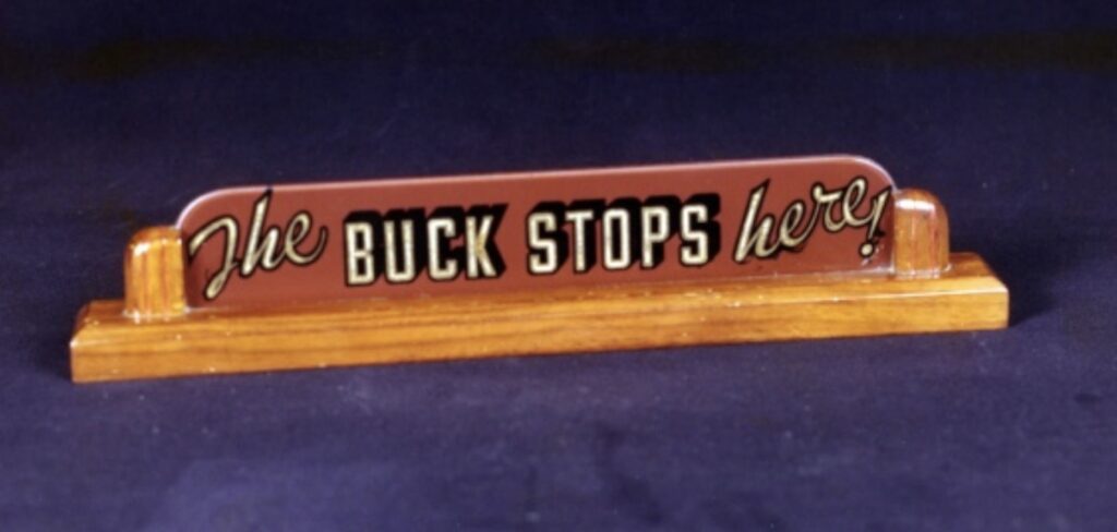 On his desk sat a small sign: “The buck stops here.” It was not decoration. It was the whole of his political philosophy in four words. No commissions, no passing the blame. Once a problem reached him, he owned it — for better or worse.