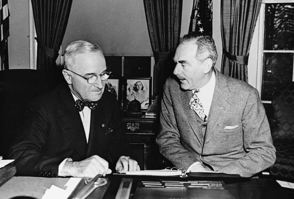 Two months later, a visitor came to the Oval Office: J. Robert Oppenheimer, the theoretical physicist who had directed the scientific core of the Manhattan Project. The newspapers had already called him the “father of the atomic bomb.”